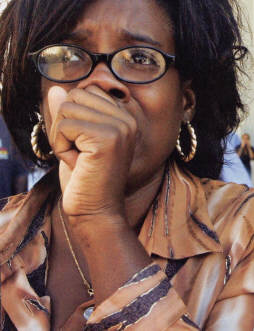 immediately, "get the hell out of there." The strength of her son's voice compelled her. Not knowing why this elder was hearing so loudly her departed son's voice the woman began to move quickly away from the complex of the World Trade Center. It crumbled behind her. Where there are many questions ... there are answers. This picture -at left- is riveting. You can see the reflection in this person's glasses. Through the eyes of human beings. |