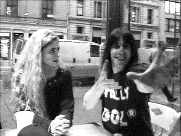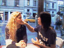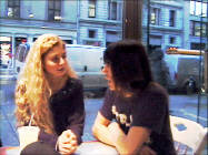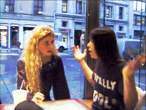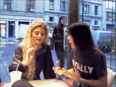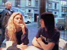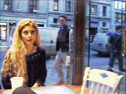 Cafe. Two People sitting in the window of a store front on Fifth Avenue, New York City. |